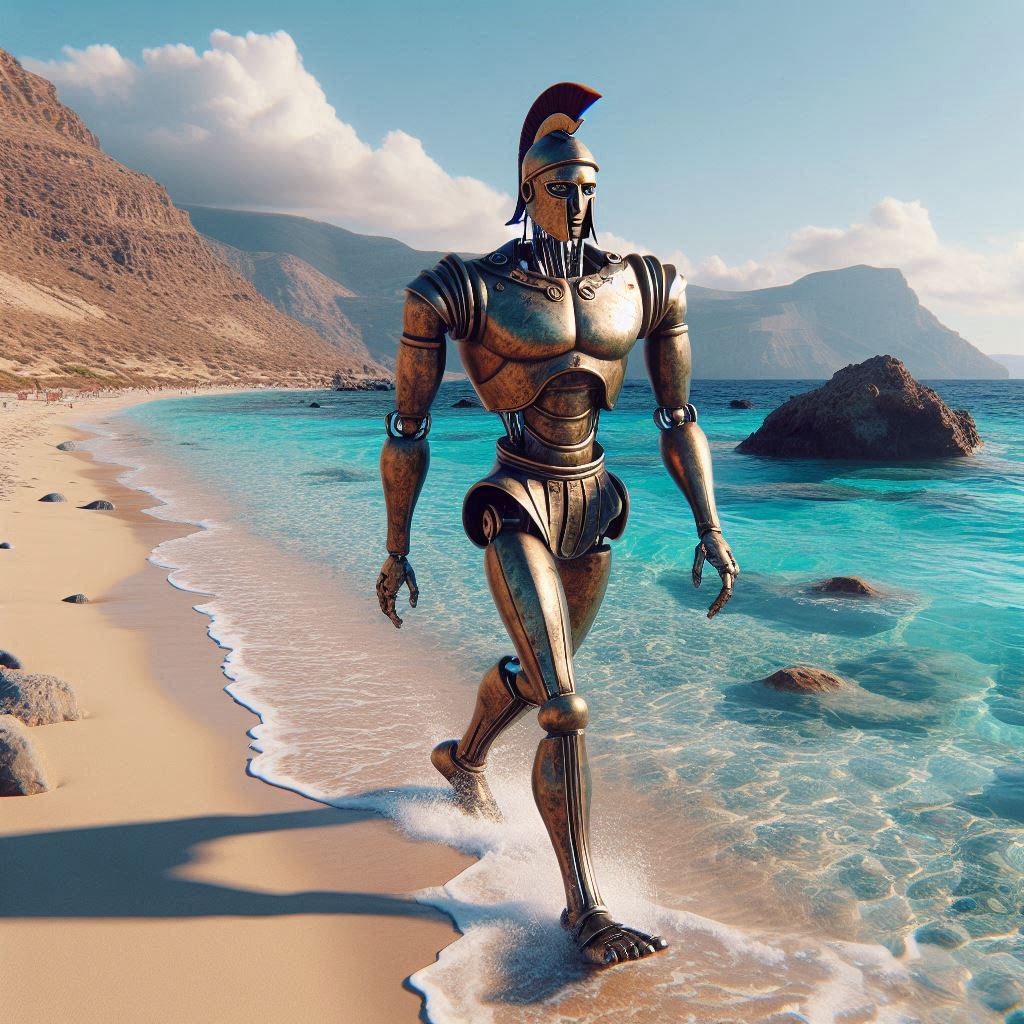 According to the ancient tales, Talos was tasked with guarding the island of Crete by circling it three times daily.